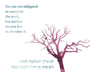 A beautiful print of the words from Pirkei Avot: You are not obligated to complete the work, but neither are you free to abandon it.