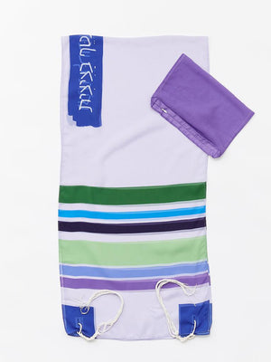 We bought this tallit for our grandson who shared that he loves the pattern and thinks that the tallit is put together really well. He also likes how nice and smooth the fabric feels. And by coincidence, it goes well with his green kippah. May he wear it for many years in good health!