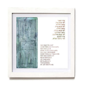 A lovely housewarming gift or wedding gift. The text of the traditional Jewish House Blessing reads: "May only delight come through this gate. May only love come to this dwelling. May only friendship come through this door. May only comfort be in this place. Let this home be filled with the blessing of joy and peace."